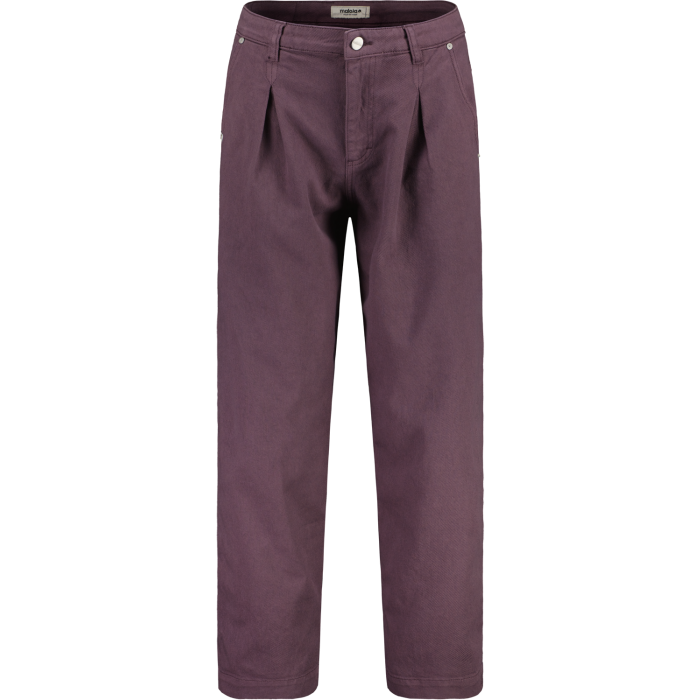 women’s pants in garment dye stretch denim, relaxed fit. High waist, pleats, heart label & every pair unique. Available in 3 colors.